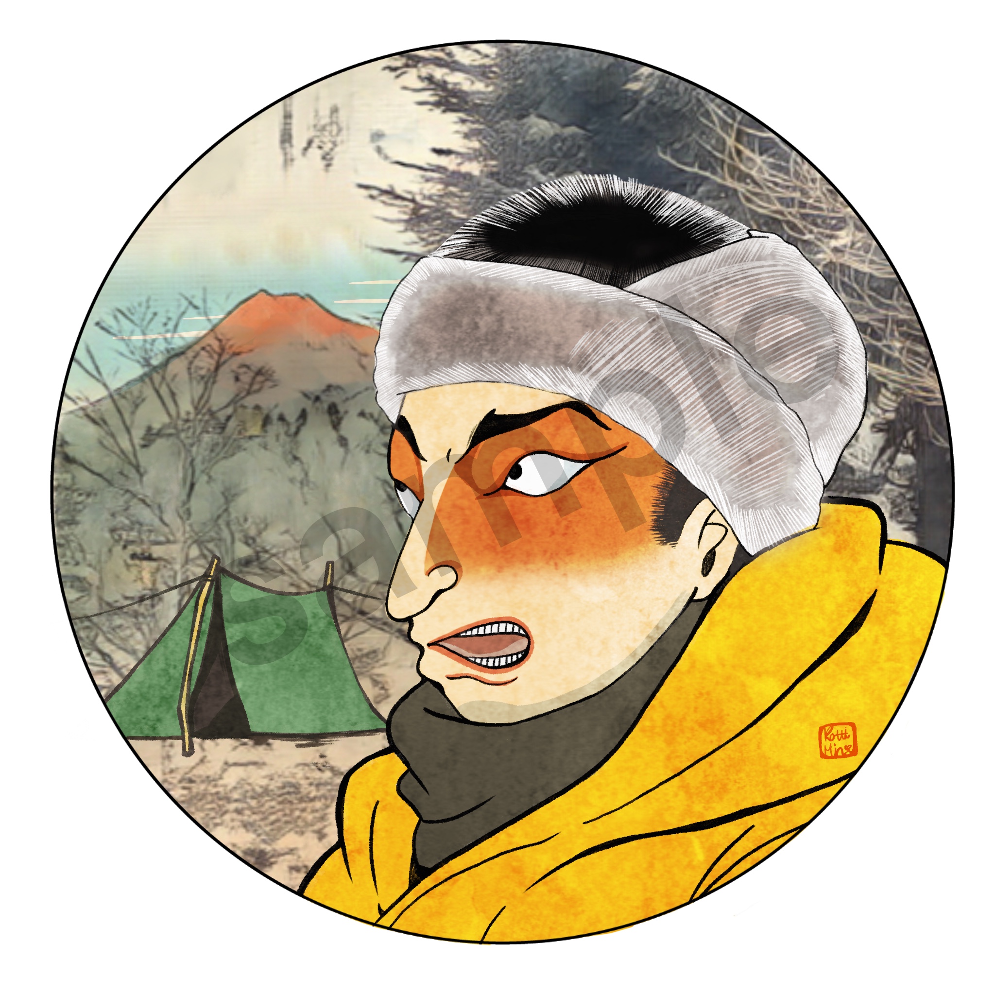 大分のキャンパー登嶽(とうごく)様のSNSアイコンを描かせていただきました!Instagramのプロフィールアイコン画像としてご利用いただいております。(※転載防止のためsampleのロゴを入れています。)浮世絵風とのご依頼で、渋くかっこよく無骨なイラストに仕上げました!